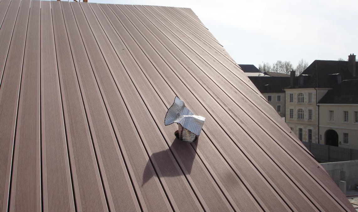En 2008, le campus universitaire de Troyes a fait le choix d’un habillage de façade contemporain et durable en optant pour les lames de terrasse en bois composite Silvadec. C’est la lame Élégance, coloris brun exotique, qui a été retenue pour revêtir les façades de ce bâtiment à l’architecture moderne et épurée.