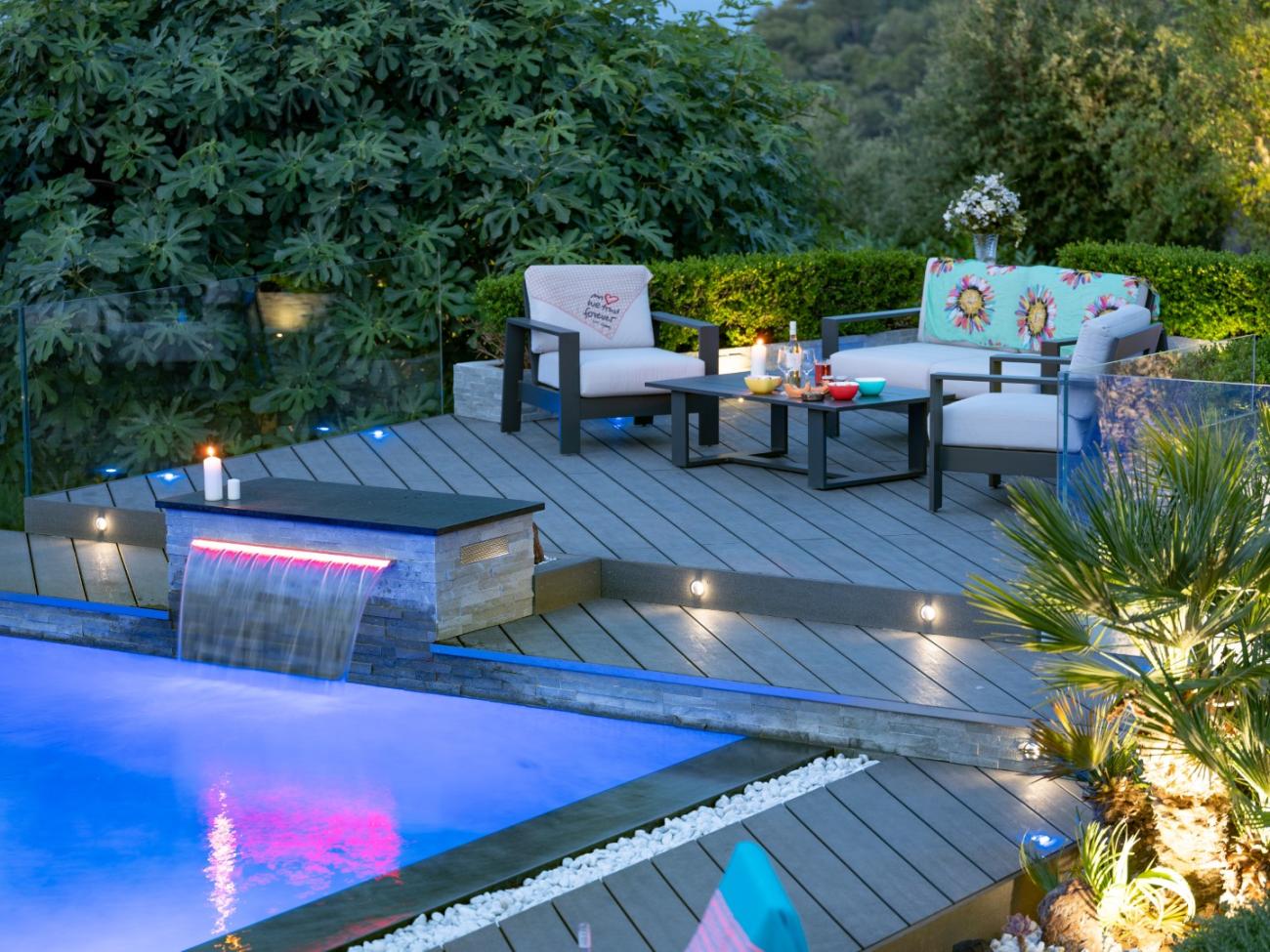 Notre lame de terrasse Élégance structurée est compatible avec l’ensemble de nos accessoires de montage et de finition (dont les options d’éclairage).