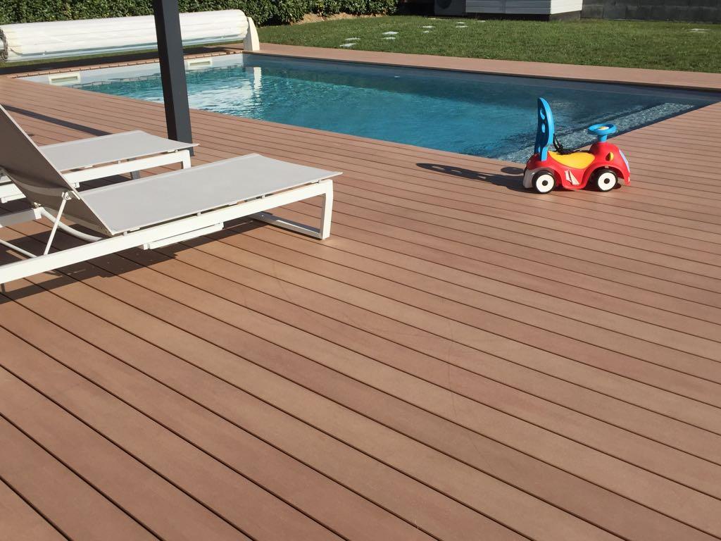 Choisissez la couleur brun Equateur pour son côté exotique. Avec sa couleur claire, la lame de terrasse Émotion brun Savane est idéale pieds nus. En effet, les lames de terrasse de couleurs claires sont très confortables, leur température au soleil équivalente à celle d’un bois exotique. Ce sont les lames idéales à installer en plage de piscine. Elles ne craignent ni le chlore, ni le sel, ni les produits d’entretien piscine et ont une très bonne résistance à la glisse pieds nus.