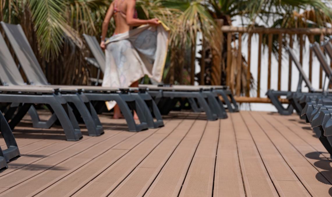 Sa couleur claire offre pieds nus un confort unique : sa température au soleil n'est pas supérieure à celle d'un bois exotique.