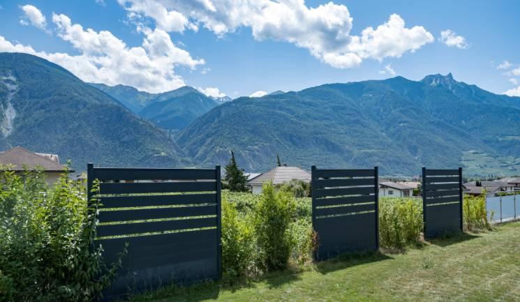 Clôture ajourée en aluminium au pied des montagnes Suisse !